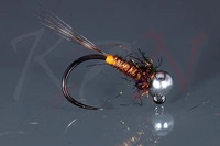 Pheasant tail jig nymph - fluo orange tungsten bead - NJ01 #14