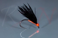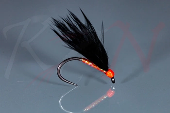 Mucha czarny Wooly Bugger z fluo pomarańczową główką - ML11 #10
